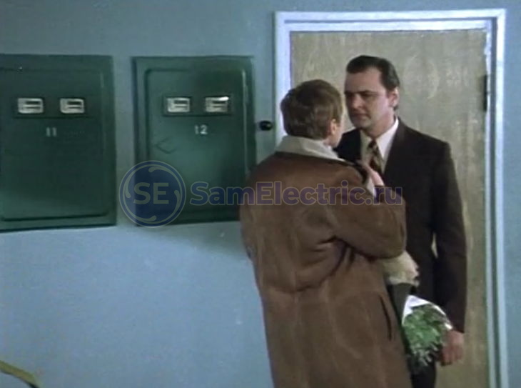 Кстати, через несколько секунд, когда Иполлит отталкивает Женю Лукашина, виден ещё электрощиток, и кинокамера. Косяк в фильме. Но от этого он не стал менее новогодним. С Новым 2015 годом! (пишу эти строки, а с кухни запах оливье!)