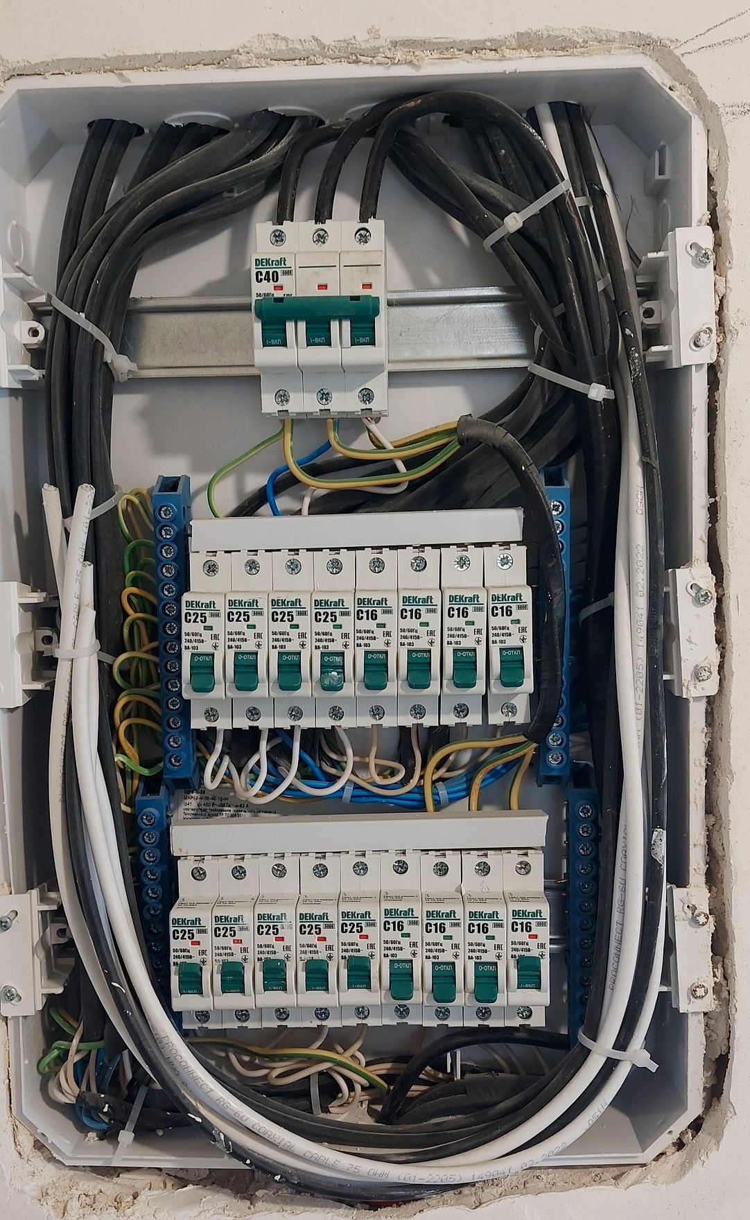 А пока, к сожалению, до сих пор встречаются такие щитки в стиле “25 розетки/16 свет, штоб не выбивало”: