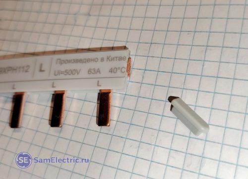 - Изолирующие колпачки на контакты гребенчатых шин. Про такой колпачок я говорил выше, когда рассказывал про снятие автоматов с гребенчатой шины.