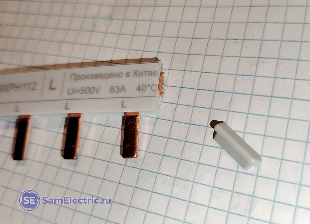 - Гребенка требует точного раскроя, иначе при ошибке или изменении количества автоматов шину нужно менять. Разумеется, нужен расчёт. Но где он не нужен? Если количество автоматов стало меньше – не проблема. Один или два пина можно оставить пустыми, надев на них специальные заглушки. А если это надолго – лишнее можно обрезать. Если же автоматы добавляются, есть три выхода: 1) добавить перемычки из проводов, 2) добавить шину необходимой длины, и соединить новый участок со старым, 3) установить новую длинную цельную шину.