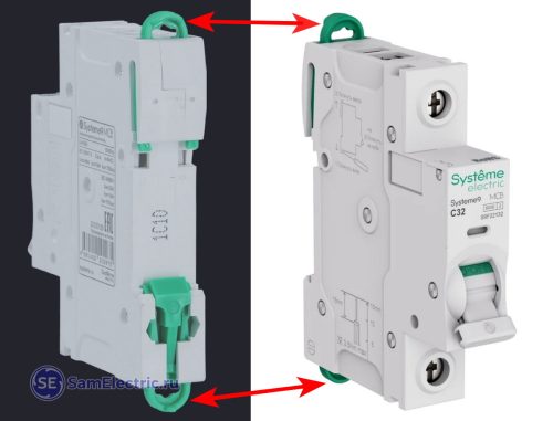 Выше для примера я взял модульную линейку City9 от компании Systeme Electric. Думаю, вам известно, что недавно Systeme Electric выпустила новую премиальную модульную серию – Systeme9. Как это относится к теме статьи? Дело в том, что в этой линейке все модульные устройства имеют двойные клипсы (двухпозиционные защёлки).