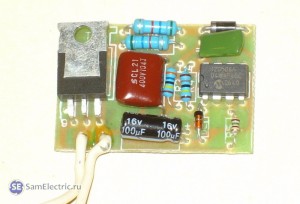 Так выглядит схема электрическая блока плавного включения ламп, собранная на плате: