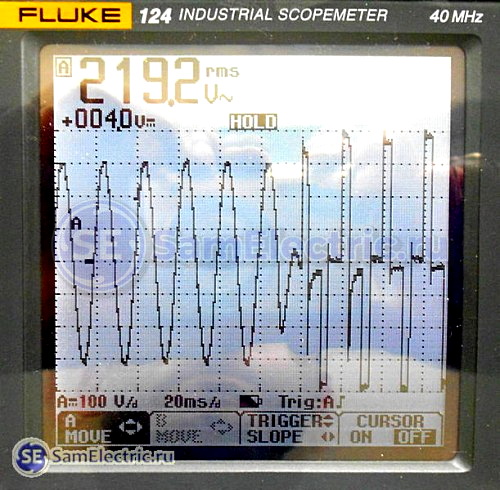 Теперь приведу для полноты картины осциллограммы напряжений на выходе Smart UPS. Испытаниям подвергался UPS Ippon Smart Power Pro 1000.