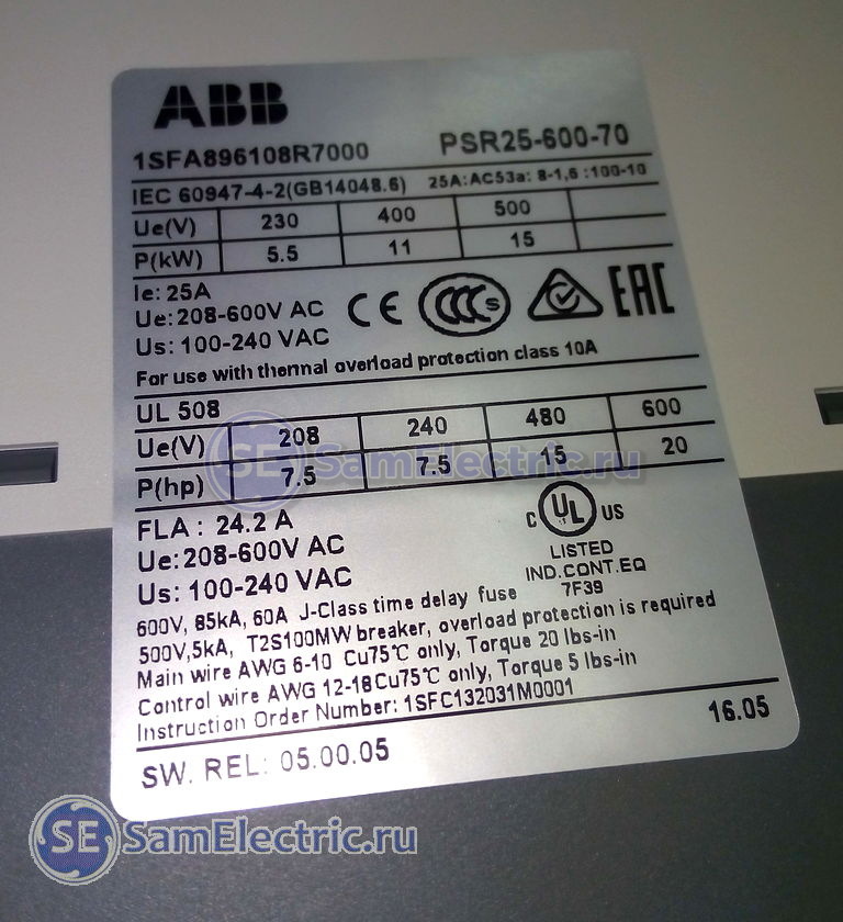 Дело в том, что у АВВ в этой линейке есть три модели, отличающиеся напряжением питания цепей управления, которое может быть трех вариантов: 24VDC (PSR25-600-81), 24VDC/24VAC (PSR25-600-11), 100-240VAC (PSR25-600-70).